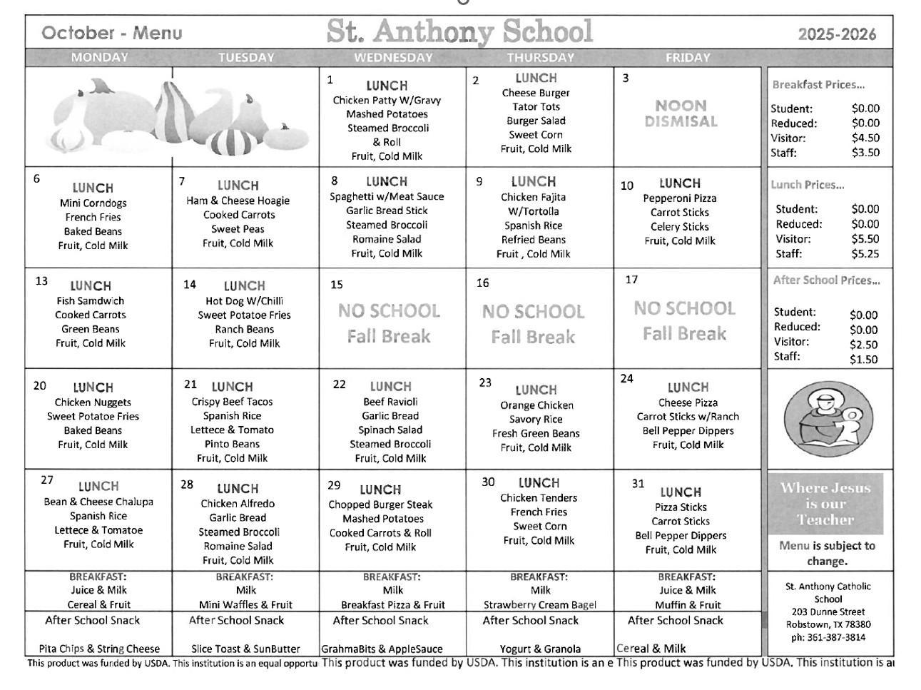 Children need healthy meals to learn. St. Anthony School offers healthy meals every school day.